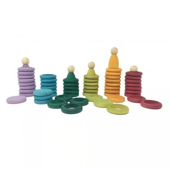 Grapat Houten Nins Poppetjes, Ringen en Munten – niet-primaire kleuren