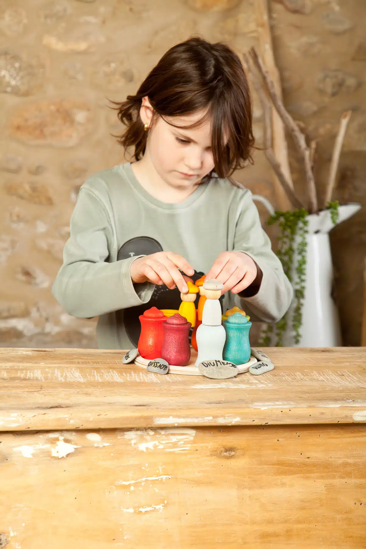 Het houten speelgoed bied kinderen veel ruimte om hun eigen spel te bedenken. Hun fantasie wordt geprikkeld en ze kunnen telkens iets nieuws bedenken met de verschillende onderdelen.