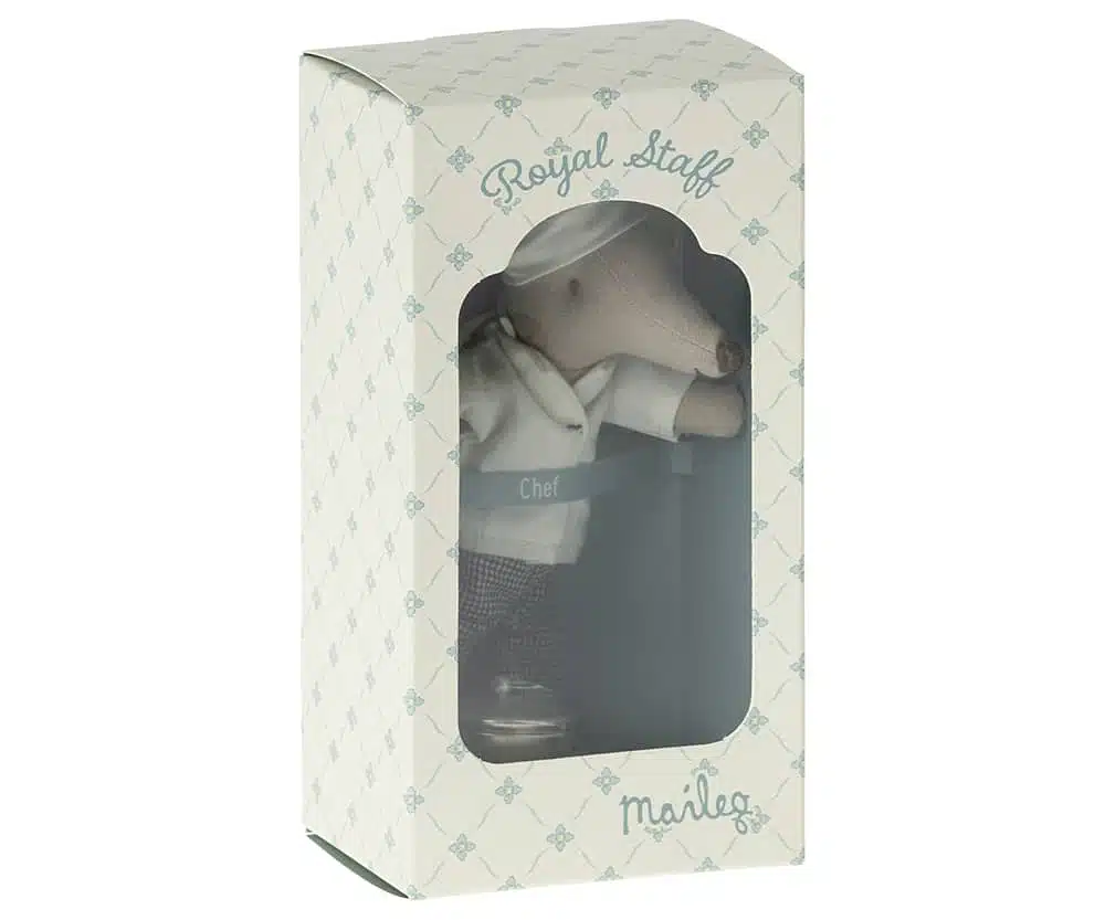 Breng culinaire magie naar de speelwereld met de Maileg Chef Muis met Soeppan en Lepel. Deze schattige chef-muis is perfect voor kinderen die genieten van rollenspellen en fantasierijke verhalen in de keuken.