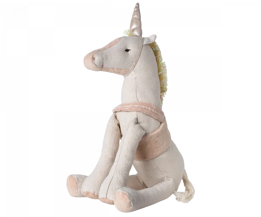 De Maileg Eenhoorn Knuffel is een magische en betoverende metgezel die de harten van kinderen van alle leeftijden zal veroveren. Deze schattige eenhoorn is ontworpen door het gerenommeerde Deense merk Maileg, dat bekend staat om zijn verfijnde en met de hand afgewerkte producten.
