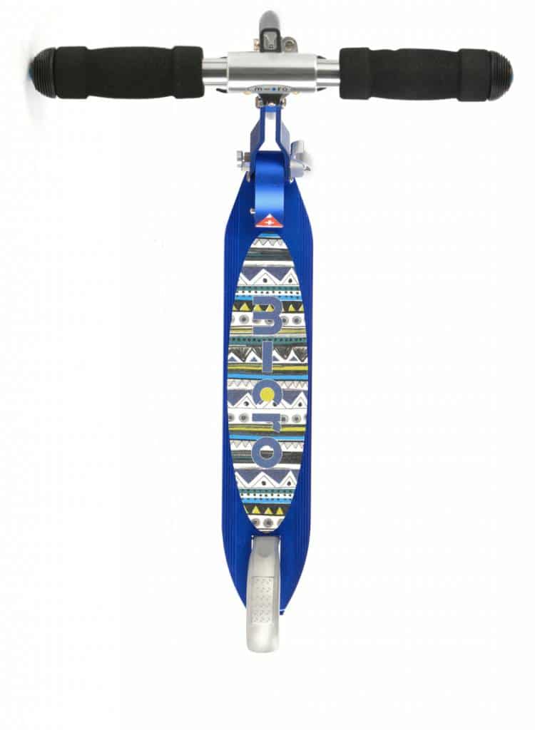 De Micro Sprite met blauw Aztec-design biedt snelheid en plezier in één. Deze lichte step is ideaal voor korte ritten en zorgt voor een comfortabele, stabiele ervaring, waar je ook rijdt.