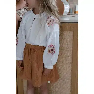 Navy Natural Guusje blouse pink flower – Geborduurde meisjesblouse – Wit